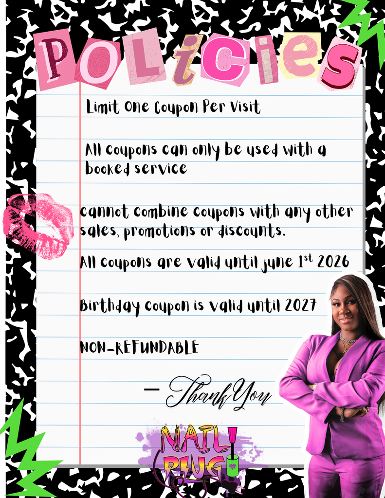 Unlock over $200 in exclusive savings with The Nail Plug 100 Coupon Book! This limited-edition coupon book is packed with 100+ premium coupons including FREE nail service add-ons and $5 OFF select services, sets, refills, repairs, freestyle, glam lux, press-ons, apparel, and more.