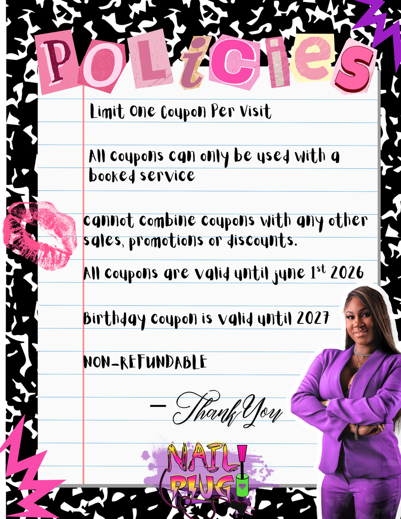 This coupon book is a must-have for any Nail Plug client who loves luxury services at a discounted price. Supplies are limited — grab yours before they’re gone!